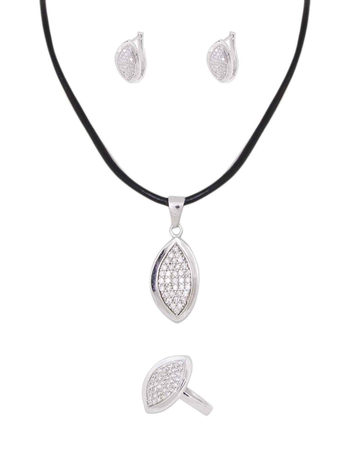 Сребърен дамски комплект от пръстен, колие и обеци