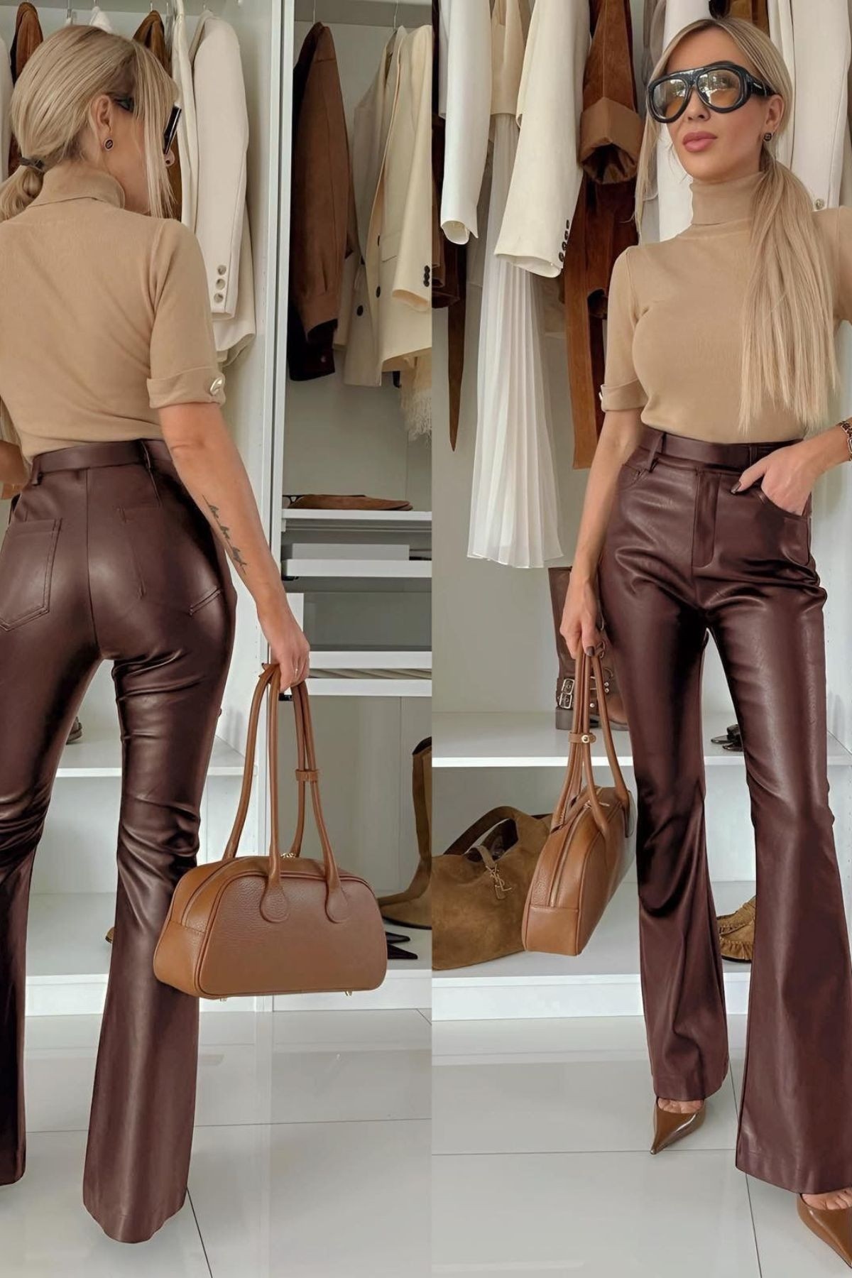 Бъди модерна и уверена с тези елегантни кожени панталони с висока талия и разкроен крачол. 🖤🤎 Подходящи за всеки повод – от офис визия до вечерен излизане. ✨ Налични в кафяв и черен цвят- без колан