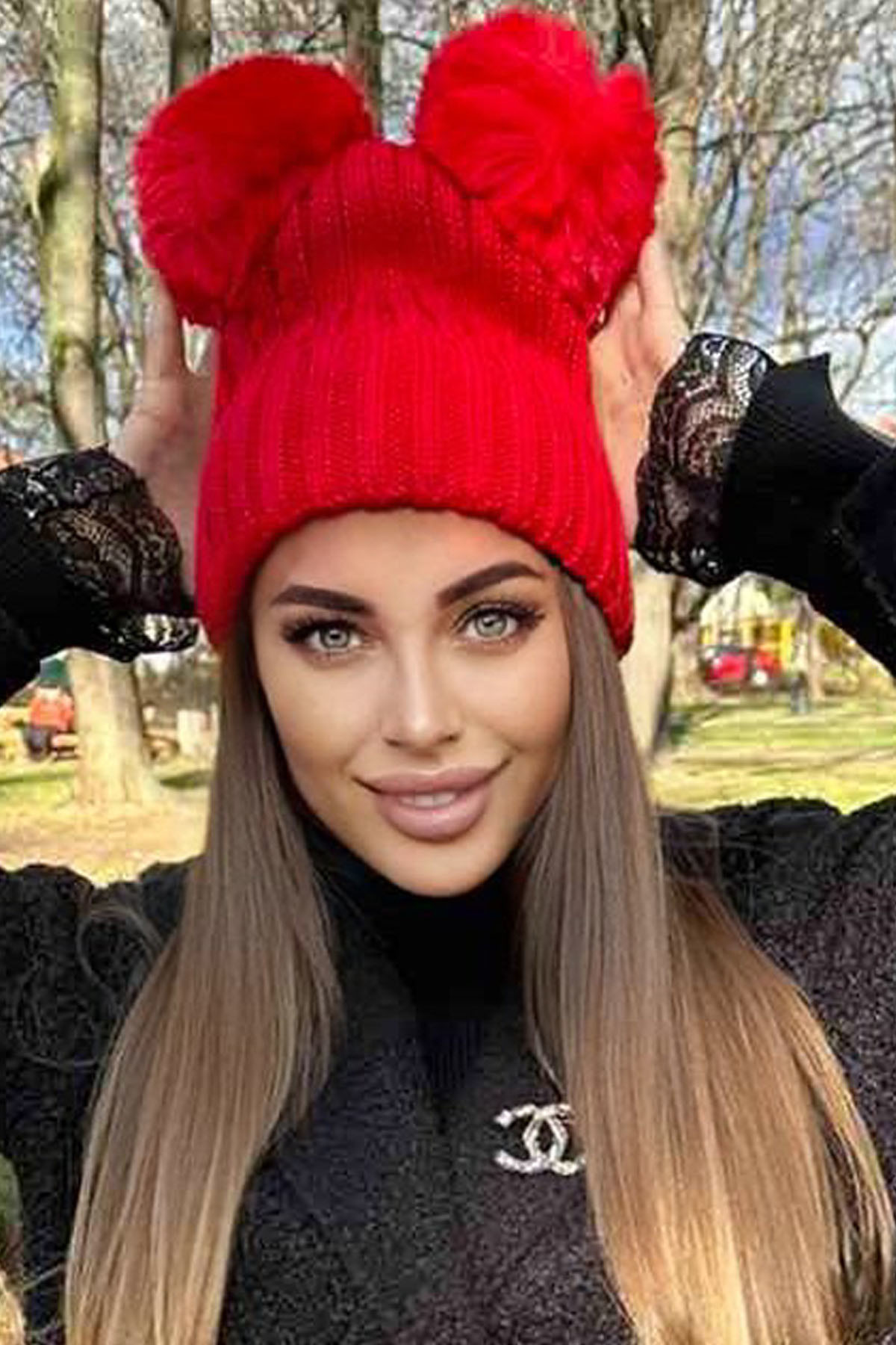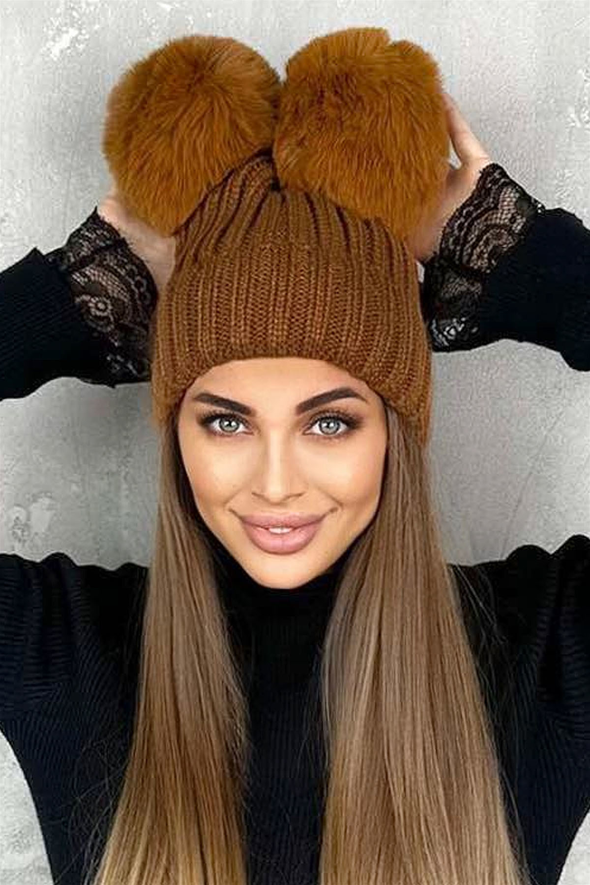 Γυναικείο καπέλο με 2 φούντες